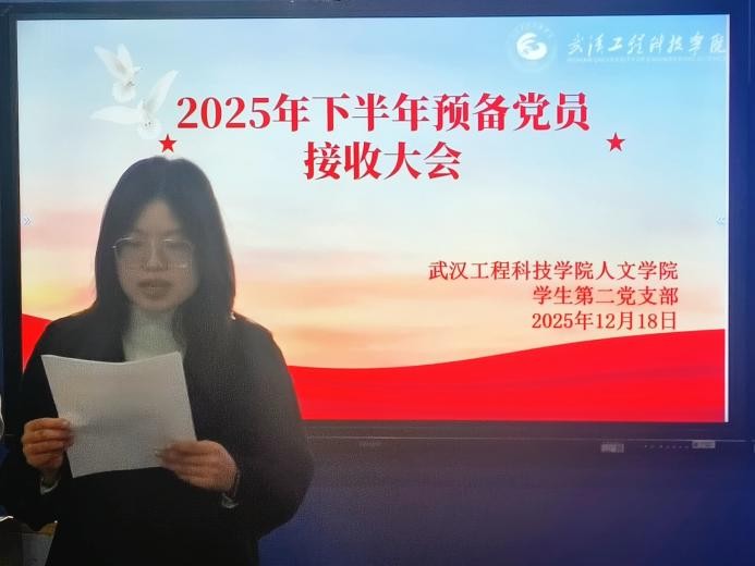 2025为严格落实党员发展程序,检验预备党员培养教育成果,为党组织注入新鲜血液、凝聚奋进力量。2025年12月8日,人文学院学生第一党支部在四教103教室举行了下半年预备党员转正大会。人文学院学生第一党支部书记张爱锋,支部组织委员彭祎,支部宣传委员魏妮以及培养联系人陆莉出席此次大会,支部全体学生党员参加本次大会。大会由张爱锋主持。