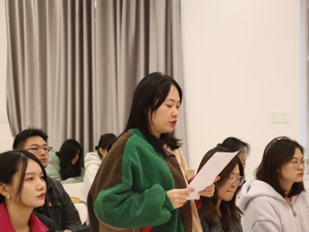 研讨交流环节,卢镜羽在发言中谈到,作为学生党员,应思考如何在国家“十五五”时期为实现文化软实力提升和绿色发展贡献力量,将个人奋斗融入国家发展大局,未来将更严格要求自己,向国家发展的目标看齐。吴佳妮则表示,要深刻领会全会核心要义,树立正确观念,坚持学以致用,不断提高自身责任感和历史使命感。