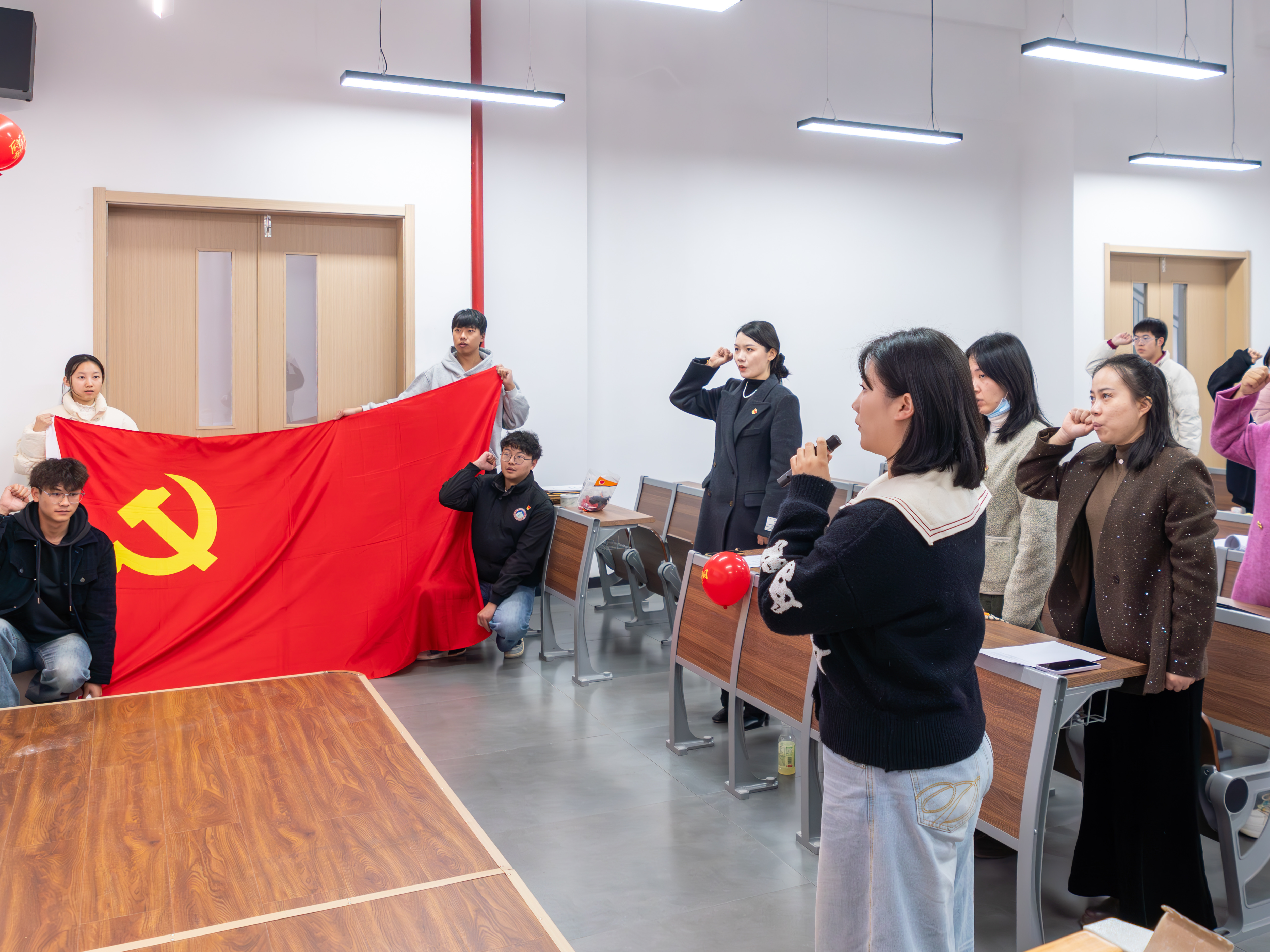 最后,张爱锋作总结讲话。她对谢键丰、王思顺利转正表示祝贺,同时对全体党员寄予厚望:一是要以转正为新起点,持续深化理论学习,筑牢思想根基;二是要立足学生干部与党员双重身份,在科创实践、服务师生中主动担当作为;三是要时刻以党员标准严格要求自己,发挥先锋模范作用,以实际行动践行入党誓词,为学院发展与党的事业贡献青春力量。
