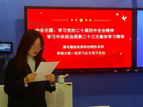 活动在庄严的国歌声中拉开序幕。大会严格按照党员发展程序,首先听取了四名发展对象就个人基本情况、对党的认识、入党动机等方面的汇报。随后,其入党介绍人分别介绍了发展对象在培养期内的思想表现、学习工作等情况。经过无记名投票表决,一致同意接收该四名发展对象为中共预备党员。扶晓彤宣读了支部大会决议。