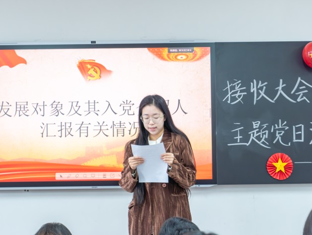 在预备党员接收环节,段宇航、周鹏宇、米梦颖、陈钰佳等发展对象依次宣读入党志愿,从思想认识、学习实践、工作服务等方面汇报个人成长情况,表达加入党组织的坚定决心和践行初心使命的郑重承诺。入党介绍人分别介绍培养考察情况,对其现实表现作出客观评价并提出今后努力方向。经与会正式党员无记名投票表决,大会一致同意接收该四名同志为中共预备党员。成风现场宣读支部决议。