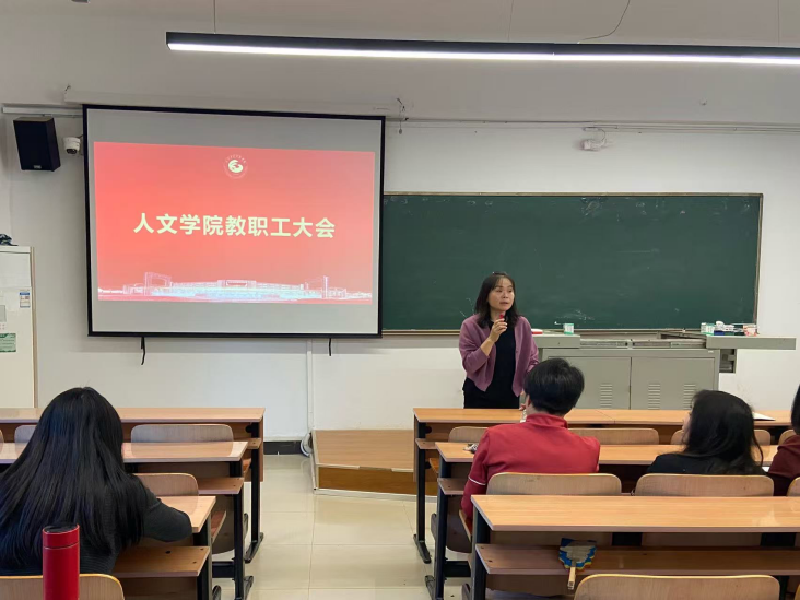 为进一步加强教学管理与师德师风建设,全面提升教育教学质量,11月5日,人文学院在一号教学楼204室召开全体教职工大会。人文学院教学副院长吴海燕,人文学院实践教学副院长郭生鼎及全体教职工参加会议。会议由吴海燕主持。