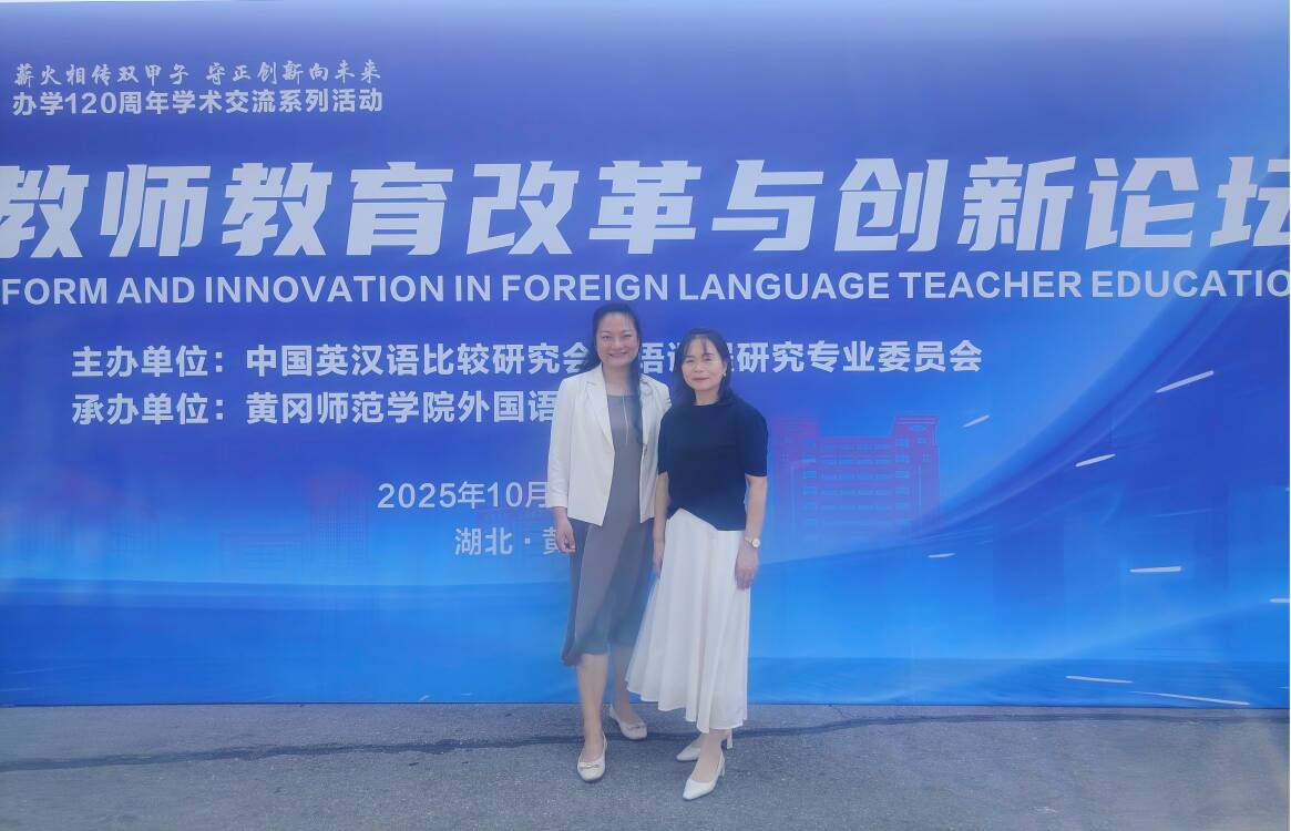 本网讯(通讯员 孙川慧)10月10-11日,外语教师教育改革与创新论坛在黄冈师范学院顺利召开。本次论坛汇聚国内外语教育领域顶尖专家学者,共同剖析当前外语教师培养的痛点难点,擘画未来发展蓝图。论坛由黄冈师范学院外国语学院院长岑海兵教授全程主持。武工院新视域文化产业学院,人文学院副院长吴海燕和英语系主任孙川慧老师参加此次论坛。
