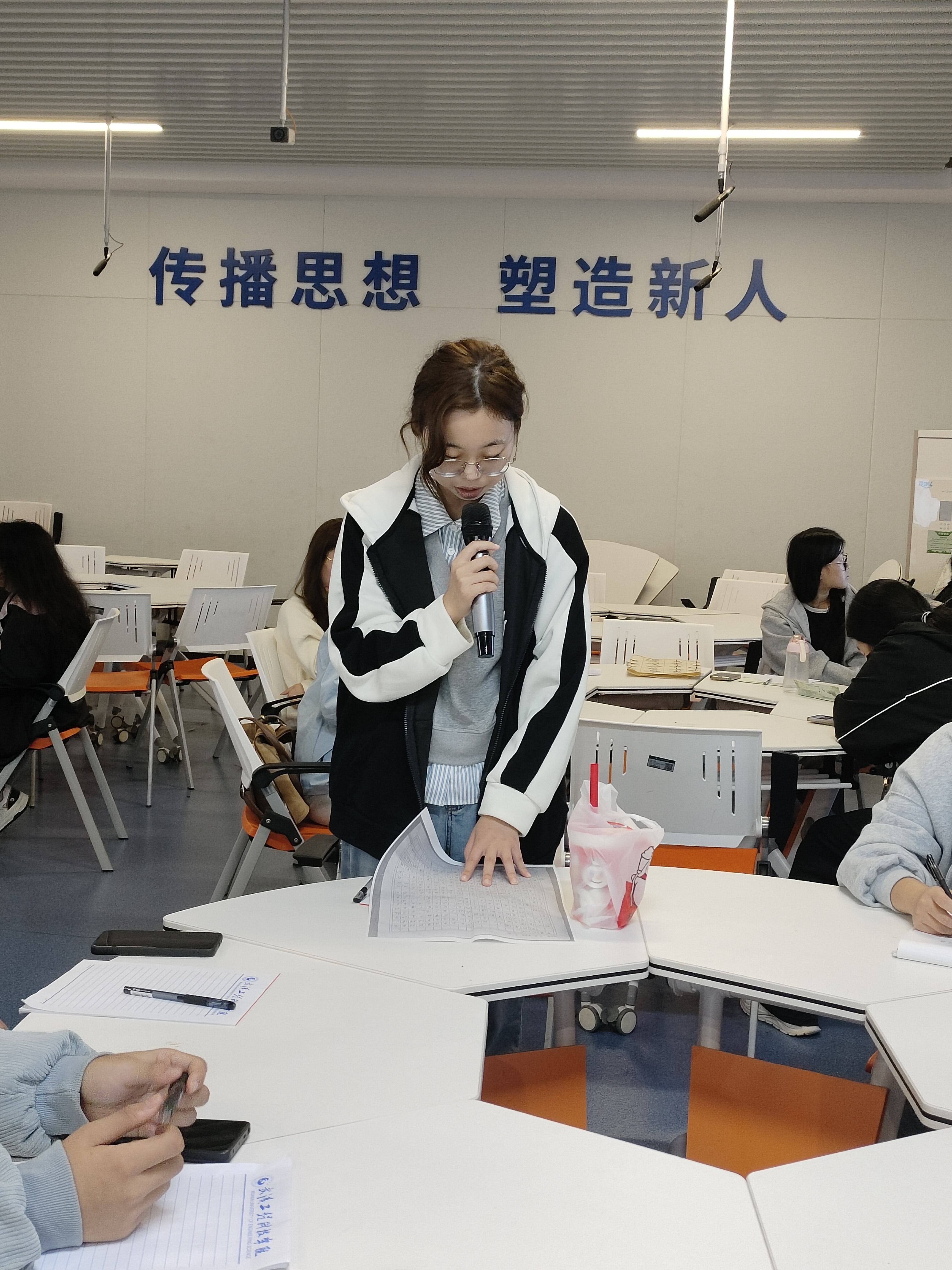 为提升学生写作素养与创作能力,11月7日晚上,武汉工程科技学院武工院新视域文化产业学院在1-101教室举办楚才写作集训营第一次课程。本次授课主题为“楚才杯写作大会写作技巧培训”,由余坦坦老师主讲,共有50名学生参加。