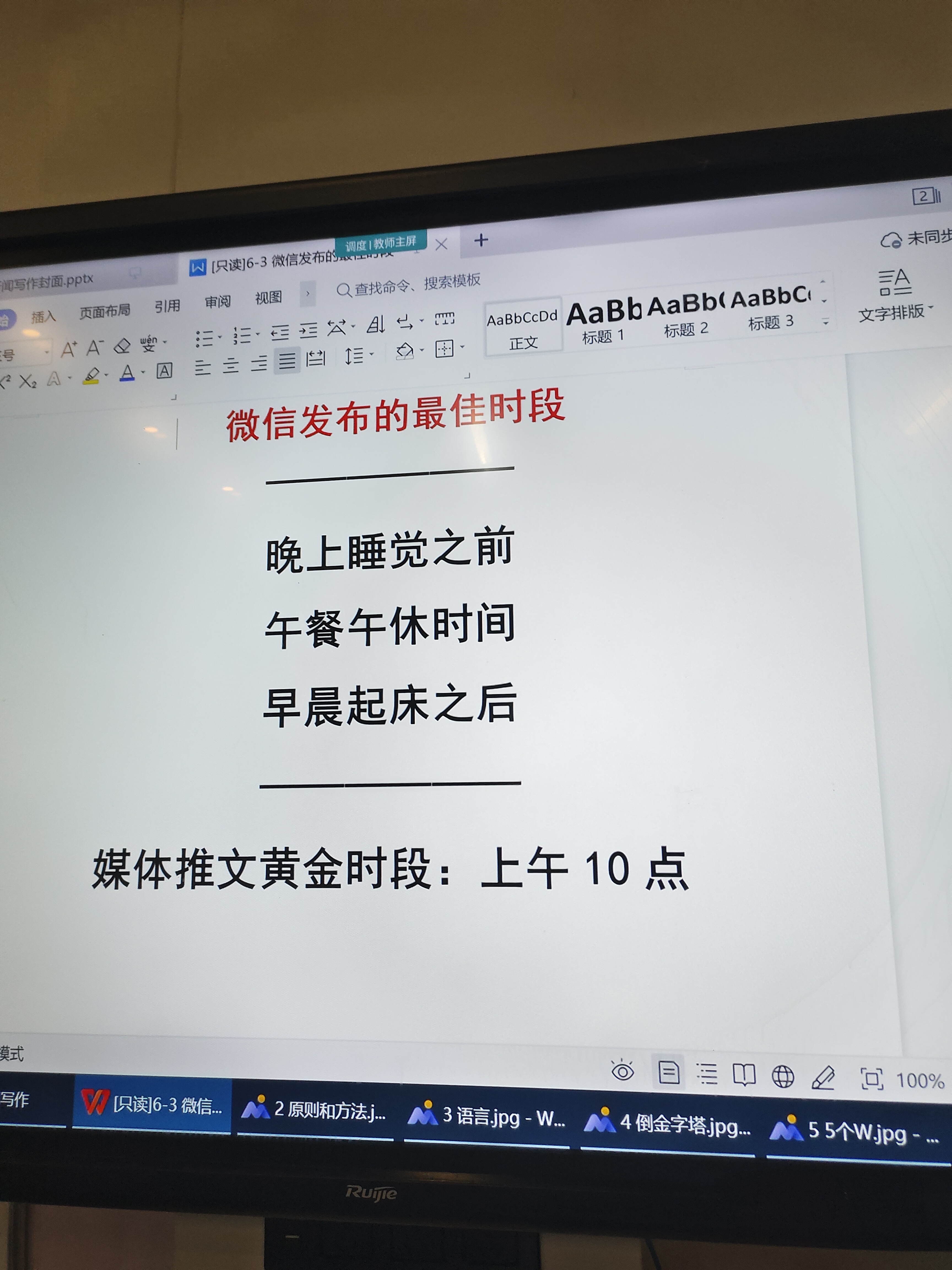课程围绕记叙文、议论文、散文及短篇小说等多种文体展开写作技巧讲授。授课中,余老师以广告创作与写作为切入点,结合实例说明创意生成方式,并分享媒体推文的黄金发布时间—上午10点,帮助学生理解内容传播与阅读习惯之间的联系。