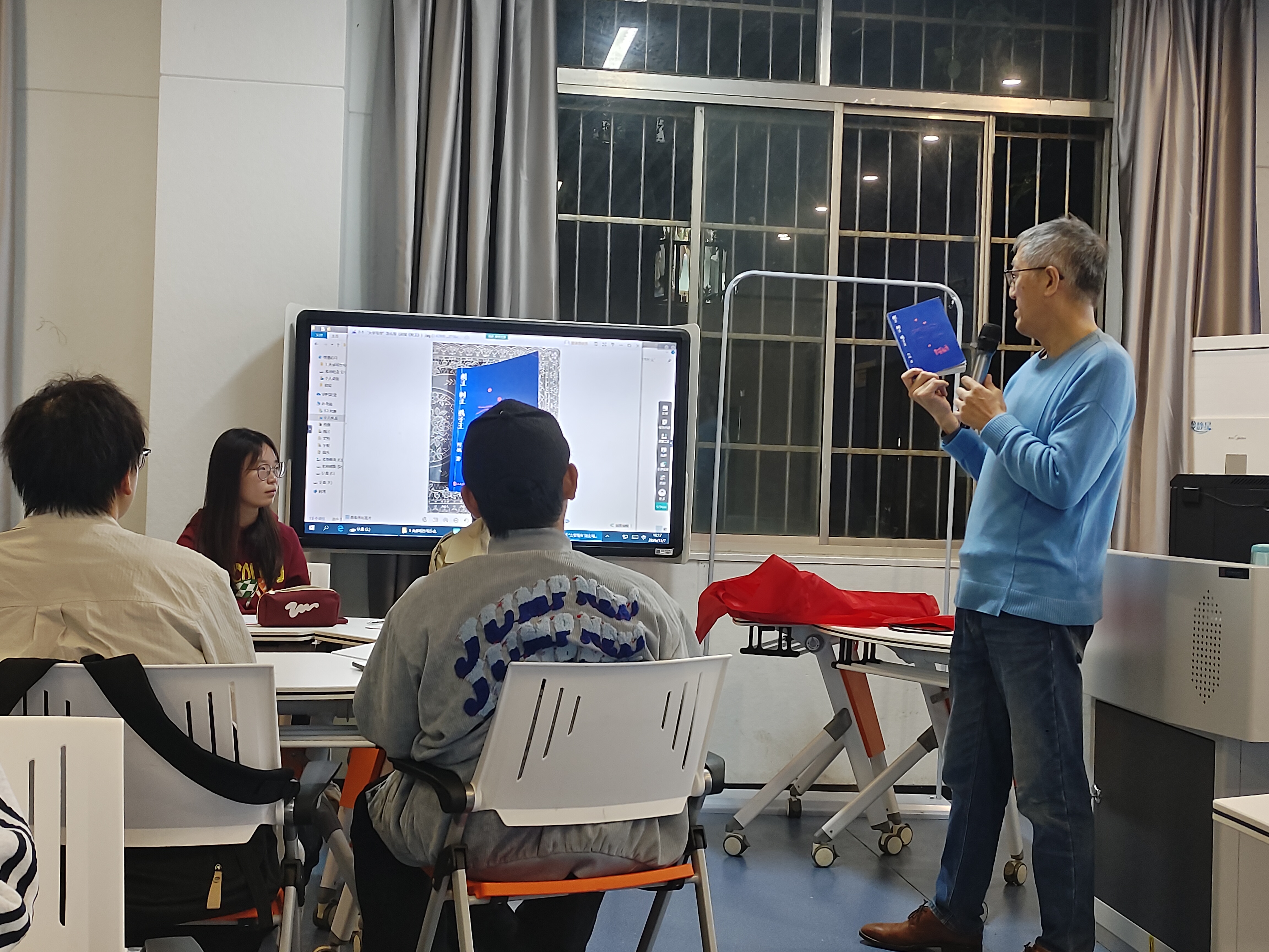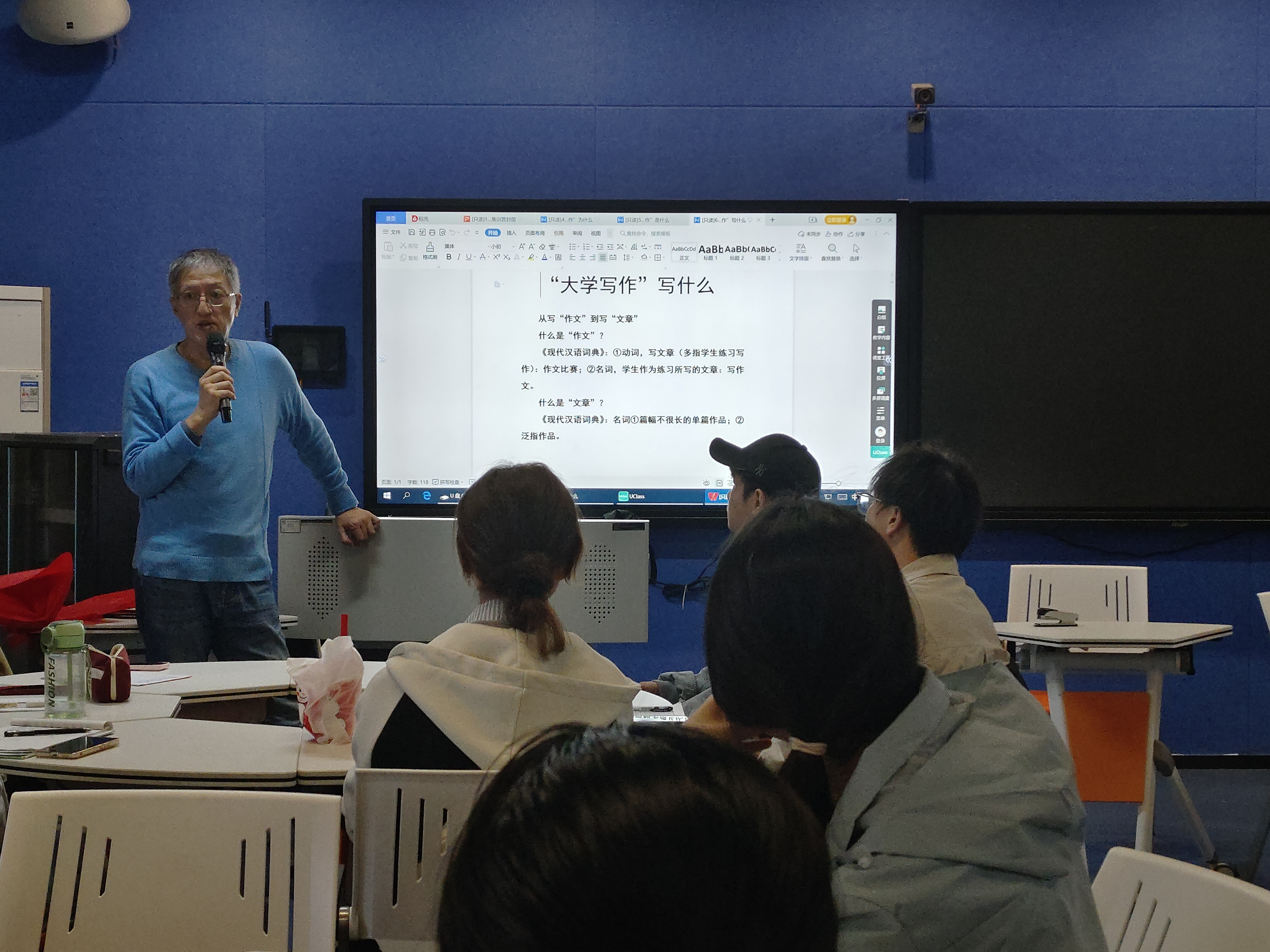 授课中,余坦坦老师围绕大学写作展开深入讲解。他从“大学写作写什么”入手,阐释了从写“作文”到写“文章”的过渡,并强调大学写作的目的在于塑造学生成为有思考力与表达力的人。同时,他指出,人工智能虽能辅助写作,但无法替代学生自身的思考和实践。