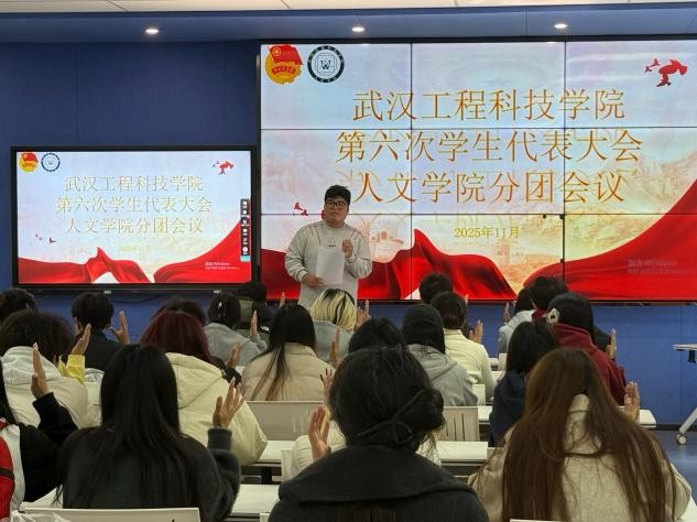 至此,武汉工程科技学院第六次学生代表大会人文学院分团会议圆满结束!此次会议有效助力学生代表明晰大会宗旨与履职要点,激发了大家主动投身学代会议事进程的热情,为大会凝聚共识、贡献智慧。会议进一步夯实了学代会民主决策的实践基础,展现了人文学院学子的责任担当,也为整场大会的顺利进行注入了青春力量。