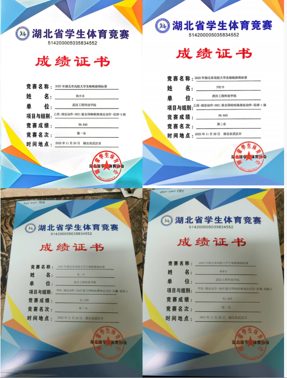 本网讯(通讯员 徐娅妮) 2025年11月28日至30日,由湖北省学生体育协会主办、武汉体育学院承办的2025年湖北省高校大学生啦啦操锦标赛在武汉体育学院体育馆隆重举行。我校啦啦操队、街舞队在此次大赛中表现出色,凭借精湛的技艺和昂扬的斗志,从众多高校中脱颖而出,最终斩获一项第一名、三项第二名的骄人战绩,充分展现了武工院学子的青春风采与卓越实力。