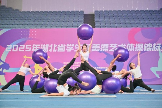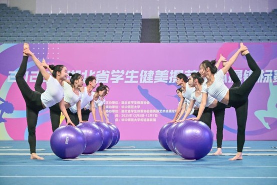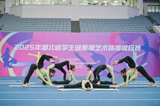 2025年12月7日,湖北省学生健美操艺术体操锦标赛在华中师范大学落幕,我校瑜伽队表现抢眼,分别斩获大学乙组集体瑜伽(辅具)一等奖和集体瑜伽(徒手)一等奖双第一的好成绩。以优异的成绩展现了我校体育育人的丰硕成果。