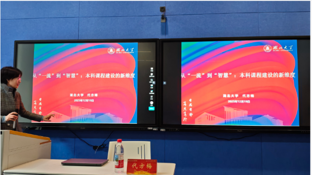 主会场在1-110教室,由湖北大学代方梅教授以国家一流课程《体育概论》的建设实践为范本,生动阐释了体育学科内涵建设的深层逻辑与实施路径。她指出,当前体育教育正面临从“重技能轻理论”到“培养文化体育人”的深刻转型。其团队以“两性一型”为金课建设核心,对课程进行系统性重塑:在内容重构上,超越教材边界,融入经典文献研读、前沿政策解读、跨学科知识链接及开放性议题争鸣,助力拓展学生理论视野与批判性思维;在模式革新上,深度融合“雨课堂”“学习通”等智慧教学工具,构建“课前预习-课中互动-课后量化分析”的全流程数据驱动教学模式,让课堂从“沉默”走向“思辨”,显著提升教学效能与学生参与度;在评价创新上,打破单一结果评价模式,建立涵盖过程性、进步性、议题式、总结性与否决性的多元综合评价体系,科学衡量学生的综合能力成长与学习投入。代教授的分享,系统展示了如何将教学“痛点”转化为改革“亮点”,为体育专业课程实现价值引领、知识传授与能力培养的有机统一提供了可复制的实践方案。