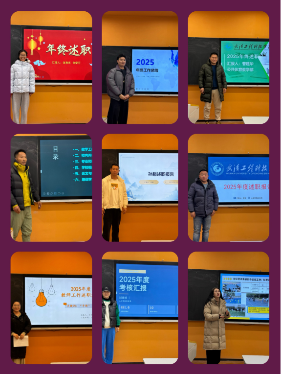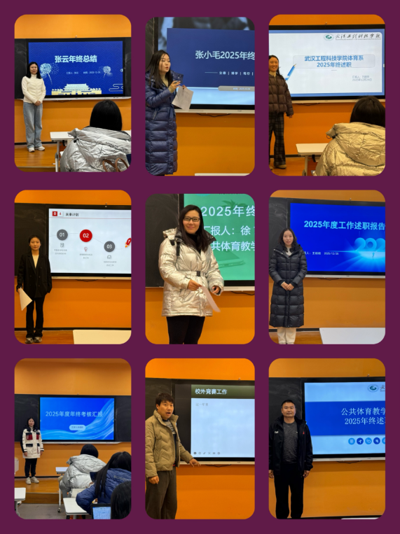 在述职环节中,与会教师依次上台,围绕2025年度承担的教学任务、科研工作、竞赛指导、学生体质健康促进、公共体育服务以及个人专业发展等方面进行了全面、详细的汇报,既展示了亮点与成效,也坦诚分析了存在的问题与挑战。