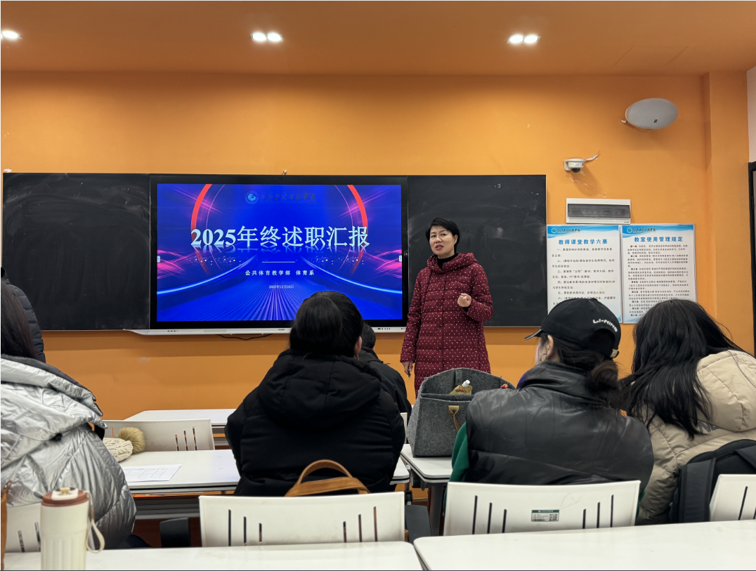 述职结束后,体育系主任宋英作总结讲话。她对全体教师一年来的辛勤工作表示感谢,认为大家的汇报内容充实、思考深入,展现了体育教师队伍爱岗敬业、追求卓越的精神风貌。宋英主任强调,展望2026年,部门将继续加强师资队伍建设,深化体育教学改革,推动群体活动与竞技体育协同发展,期待全体教师继续保持昂扬斗志,携手推动学院体育事业再上新台阶。